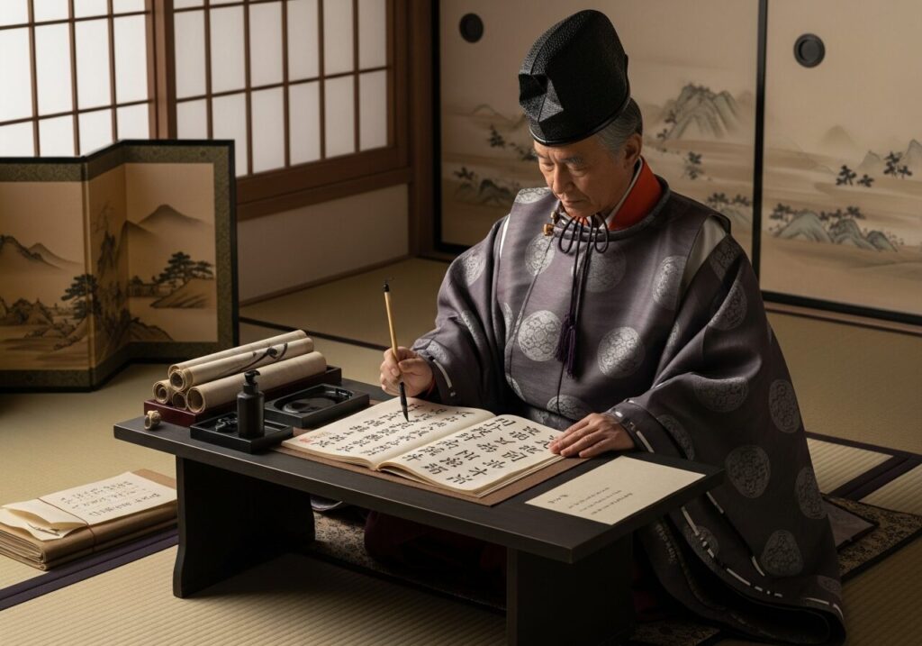 彼は日本における兵法研究の大家であり、『闘戦経(とうせんきょう)』という日本最古の兵法書の一つを生み出した人物と伝えられています。