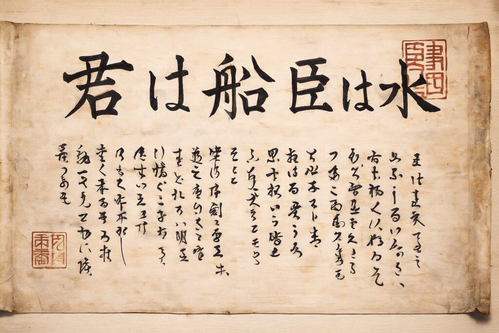 主君と臣下とは、舟と水のような関係である。水が舟を浮かべるように、臣下は主君を支える。